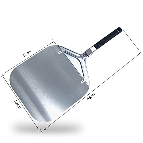 NOKITC Pala per Pizza - Pala Pizza in Alluminio Corta Forata con Manico pieghevole, per cuocere al forno pizzas, pane, torte fatte in casa, grande superficie di appoggio (63 x 32 cm)