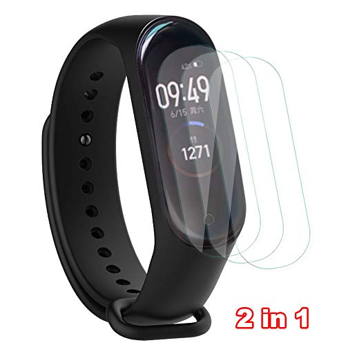 NOKOER Cinturini per Xiaomi Mi Band 4, [2 in 1] TPU Silicone Cinturino + 3 Pezzi Pellicola Protettiva, [Resistente All'usura] [Traspirante] per Xiaomi Mi Band 4 - Nero