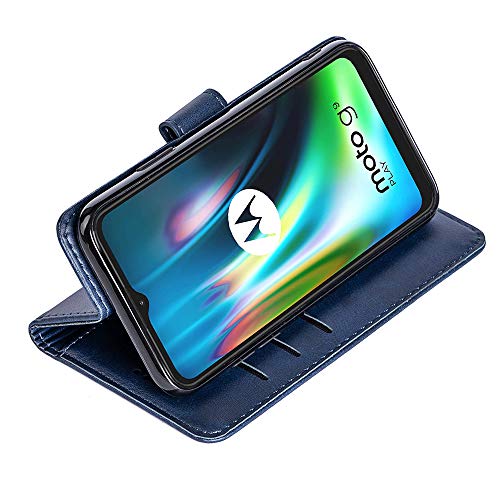 NOKOER Cover per Motorola Moto E7 Plus, Staffa Verticale Portafoglio in Pelle Custodia [Porta Carta] [Nuovo Materiale] Antiurto Anti Impronta Digitale Case - Blu