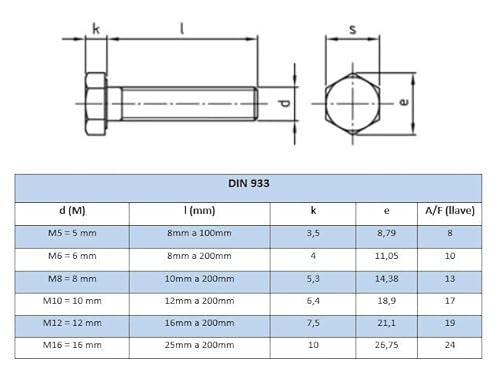 ✅ SPECIFICHE TECNICHE: Vite testa esagonale DIN 933, Dado esagonale DIN 934, Rondella piatta DIN 125