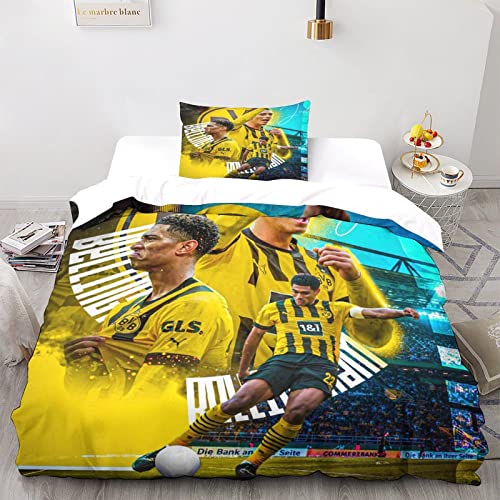 NOLEGA Jude Bellingham Set Copripiumino Microfibra Copripiumino Con Federe, 100% Cotone 3 Pezzi Set- Football Stars Per Bambini E Bambine Set Di Biancheria Da Letto Single(135x200cm)