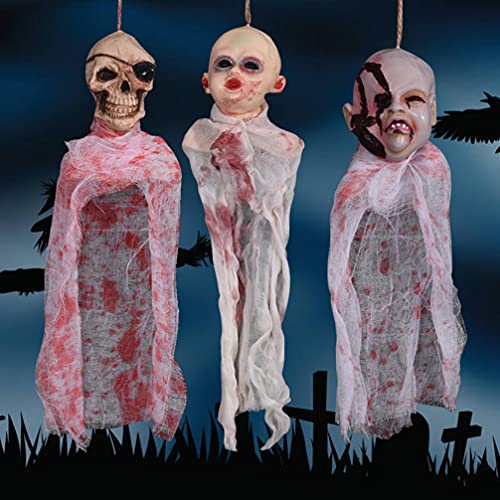 NOLITOY 3pcs Halloween Hanging Decorazione Spaventoso Bambino Fantasma Bambola Prop Animato Creepy Zombie Scheletro Fantasma Ciondolo per Casa Stregata Cortile Esterno Indoor