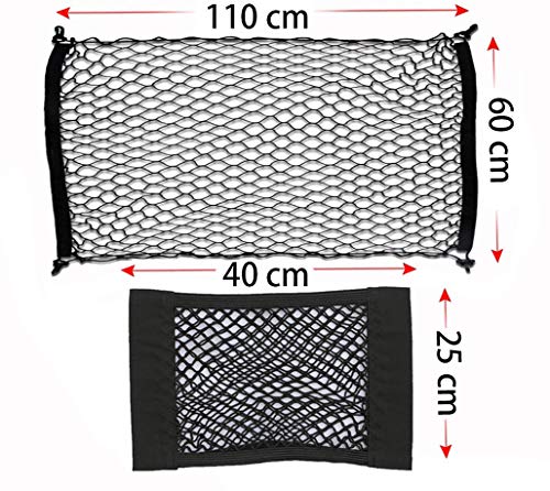Non-branded Rete elastica per bagagliaio, 110 x 60 cm e 3 sacchetti in rete elastica per bagagliaio, organizer per reti di stoccaggio (40 x 25 cm) per bagagliaio auto