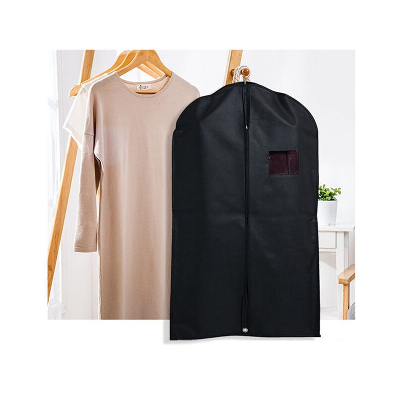 Order over 10pcs can customize your own logo. Features: Garment bags are made of top quality breathable non-woven fabric. Protect your clothing from dust and pets hair, keeping them fresh, clean and wrinkle free. Non-toxic and harmless, breathable, dustproof reusable. Enough length for short dresses, skirts, trousers, coats & tailcoats etc. Lightweight, breathable dress bag, ideal for wardrobe, for travel and for storage of any Ideal for your wardrobe and travel . Black with opening and closing zip. Protects against dust and odours. Easily hangs from wardrobe or car. Cheap enough to be able to use for individual garments and prevent creasing. Material: Non-woven fabric Color: Black