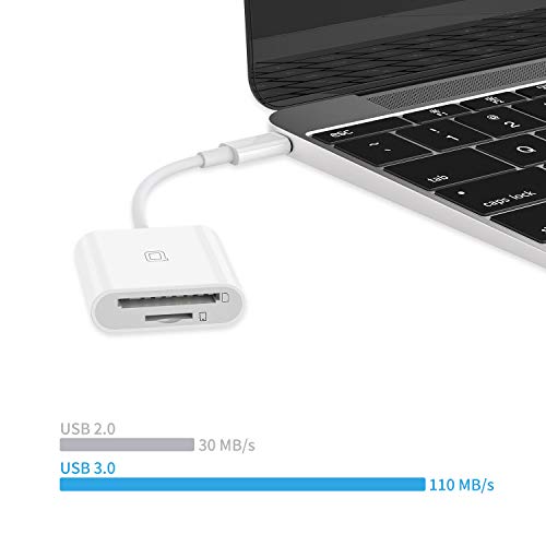 Trasmissione dati super veloce: questo lettore di schede USB di tipo C ha velocità di trasmissione dati fino a 110 MB/s. (NOTA: il dispositivo con USB 2.0 funziona solo a 480 Mbps).