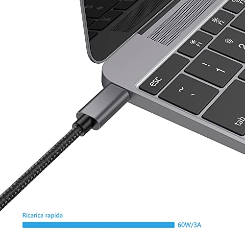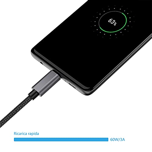 Nonda Cavo USB C USB C [2 Pezzi,2 Metri] 60W/3A, Cavo USB Type-C PD Ricarica Rapida,in Nylon per MacBook Pro 2021, iPad Pro 2021, Samsung Galaxy S20, Samsung,Xiaomi e altri Caricabatterie USB C,grigio