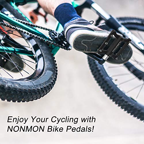 NONMON Pedali per Bici,MTB Pedali di Bicicletta con 3 Cuscinetti Sigillati,Lega di Alluminio & 9/16”Filettatura CR-Mo ASSE & 10pcs Chiodi Antiscivolo,Flat Pedale di Ricambio per BMX Strada Ciclismo