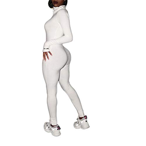 Nonotse Tuta aderente da donna, a maniche lunghe, con cerniera, da club, bianco, S
