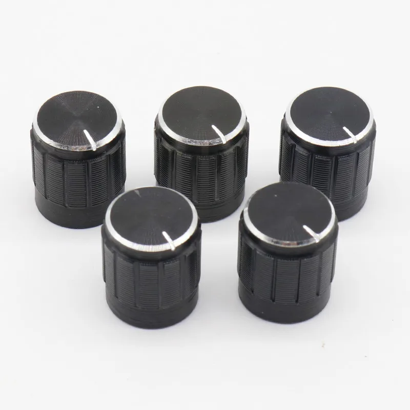 10 PCS Nonslip Ribbed Black 6MM Silver Tone Plastic Potentiometer Rotary Control Knobs Caps 15x17mm