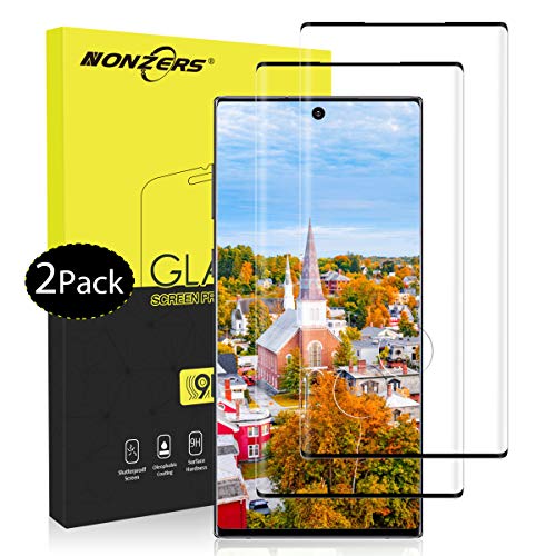 NONZERS Pellicola Protettiva per Samsung Galaxy Note 10 Vetro Temperato[2 Pezzi], Pellicole Protettive, Copertura Completa, 3D Curvo, Durezza 9H, Alta Trasparenza, Anti-Graffi, Anti-Impronte, Nero