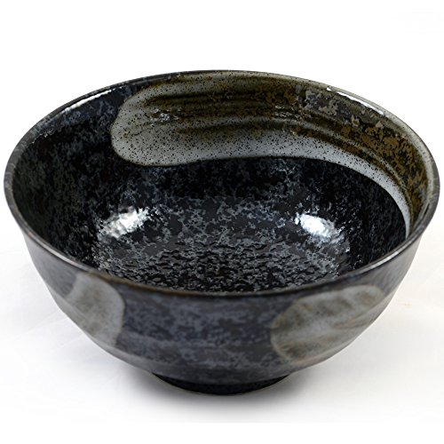 Noodle In Ceramica Giapponese, Sushi & Zuppiera In Gres Screziato Nero E Argento Satinato - 17 Centimetri