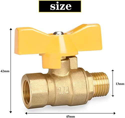 Noosverl Valvola a sfera 1/4, Valvola in ottone, filettatura esterna/filettatura interna passaggio pieno, con una maniglia a farfalla