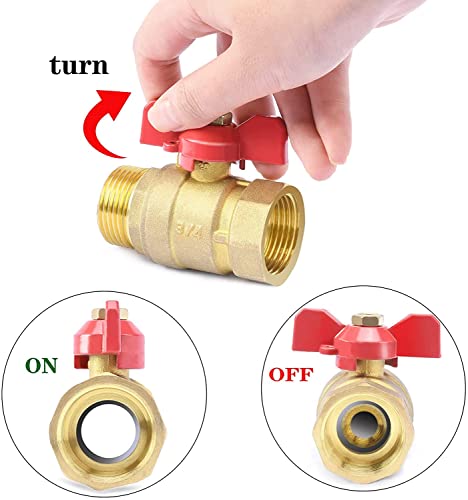Noosverl Valvola a sfera 3/4 in ottone, filettatura esterna/filettatura interna passaggio pieno, con una maniglia a farfalla rossa