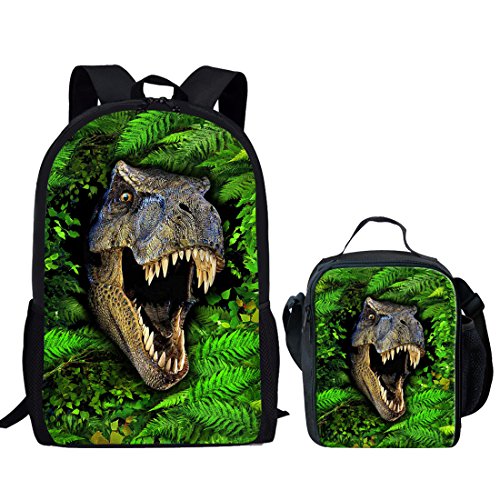 Nopersonality - Zaino scolastico per bambini, con borsa per il pranzo, per bambini e adolescenti, Dinosauro (1 set) (Verde) - Nopersonality