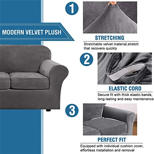 NOPEXTO Fodera per Divano in Velluto, Copridivano A 2 Posti, 2 Federa per Cuscino per Seduta Separata, Protezione per Mobili Antiscivolo Morbida in Peluche