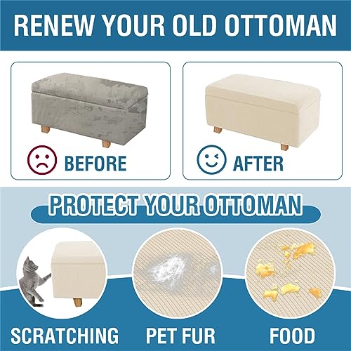 NOPEXTO 2 Pezzi Ottomano Copertura Pieghevole Sgabello, Copri Pouf Rettangolare Elasticizzato con Coperchio (Piccolo,Naturale)