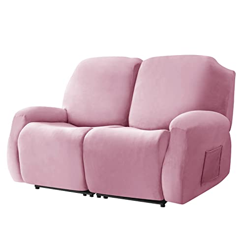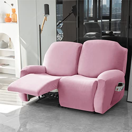 NOPEXTO Velluto Copripoltrona Relax,1 2 3 Posti Copridivano Reclinabile Elasticizzato, Protezione per Mobili Lavabile in Velluto per Bambini (2 Posti,Rosa)