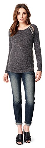 Questa maglietta alla moda a maniche lunghe con dettaglio etnico sull'inserto delle maniche dà il tocco finale a qualsiasi outfit. Maglietta premaman Henné di Noppies, effetto mélange, con scollo extra largo.