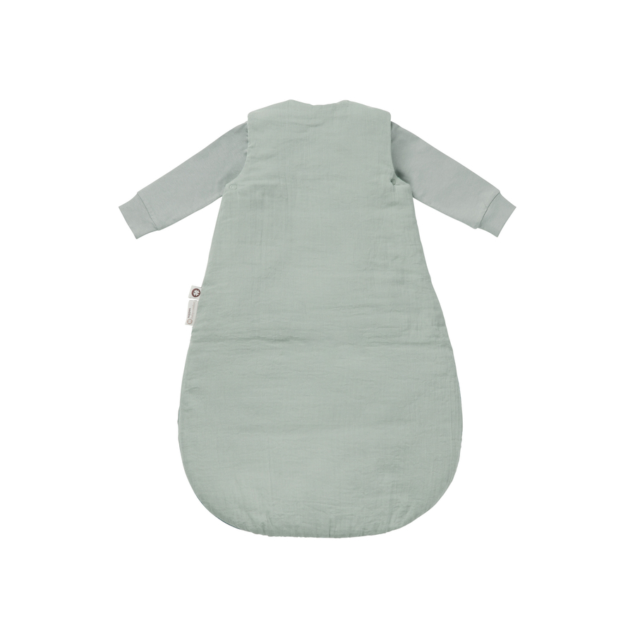 sacco interno TOG 1,0) Sacco a pelo in 2 pezzi Sacco a pelo interno a manica lunga in jersey con cerniera dritta Sacco a pelo interno utilizzabile anche da solo Sacco a pelo esterno, senza maniche e foderato, con cerniera diagonale a tutto tondo con chiusura a zip Aperture per le braccia con bottoni a pressione, che consentono di ingrandire o rimpicciolire l'apertura. Ampia libertà di movimento grazie alla forma rotonda del sacco a pelo Materiale morbido e delicato sulla pelle Materiale e cura: Materiale esterno: 100% cotone (organico) Fodera: 100% poliestere Ciclo di lavaggio normale 30°C Non lavare a secco Non candeggiare Non asciugare in asciugatrice Stirare a una temperatura massima di 110°C Tabella delle taglie: Sacco nanna 60 cm: 0-3 mesi / misura del corpo 50-60 cm Sacco a pelo 70 cm: 3-6 mesi / misura del corpo 60-70 cm Sacco a pelo 80 cm: 6-12 mesi / misura del corpo 70-80 cm Sacco a pelo 90 cm: 12-18 mesi / misura del corpo 80-90 cm Sacco a pelo 110 cm: 18-24+ mesi / misura del corpo 90-110 cm
