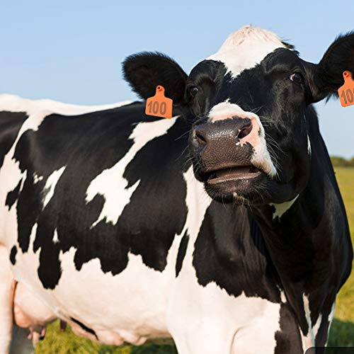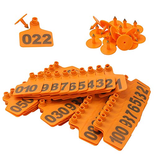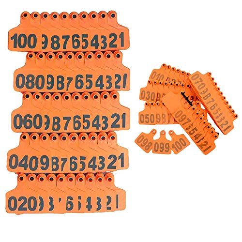 NorCWulT Ear Tag Mucca Ear Tag Verde Media Plastica Numero Bestiame 001-100 Marche Auricolari per Pig Bovino Capra Animale Arancione 100PCS