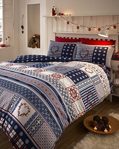 Nordic Fair Isle blu 100% cotone spazzolato flanella, Blue, Super King