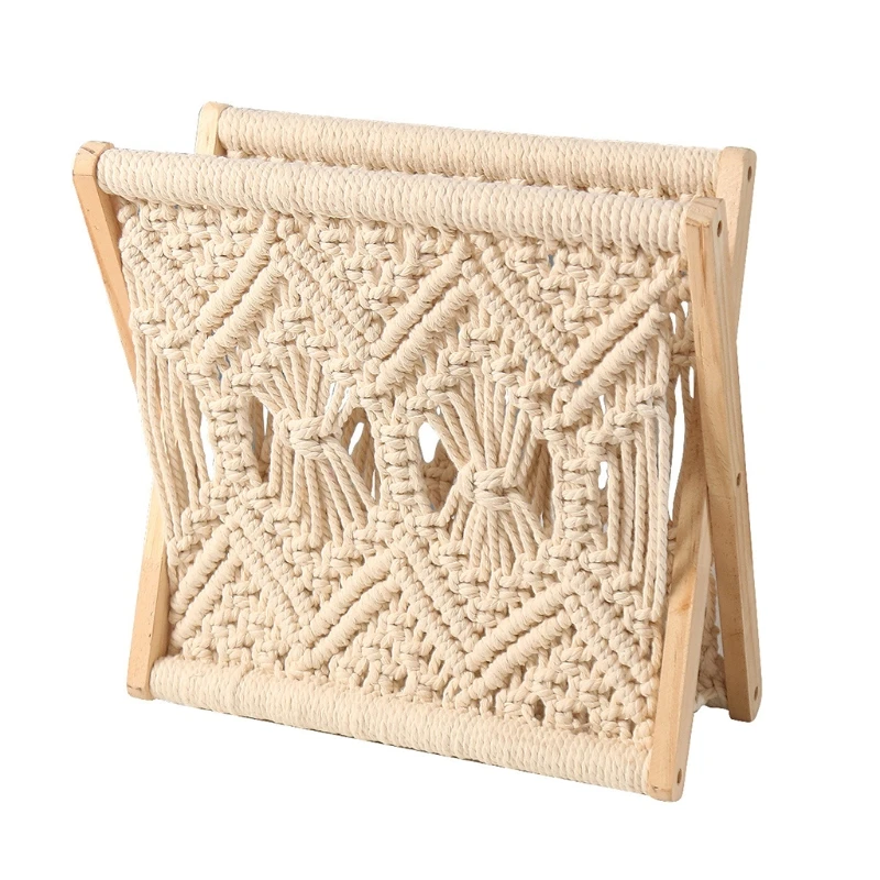 HX5F Nordic Cotton Woven Storage Basket Boho Macrame Knitting Folding Magazine Rack