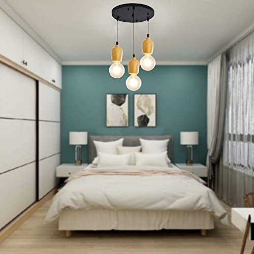 Nordic Esagono Lampade a Sospensione in legno in Stile Geometrico Moderno, E27 Retro Plafoniera Interni Lampadario adatto per camera da letto Sala da pranzo Bar Decorazioni (lampadina non inclusa) (B)
