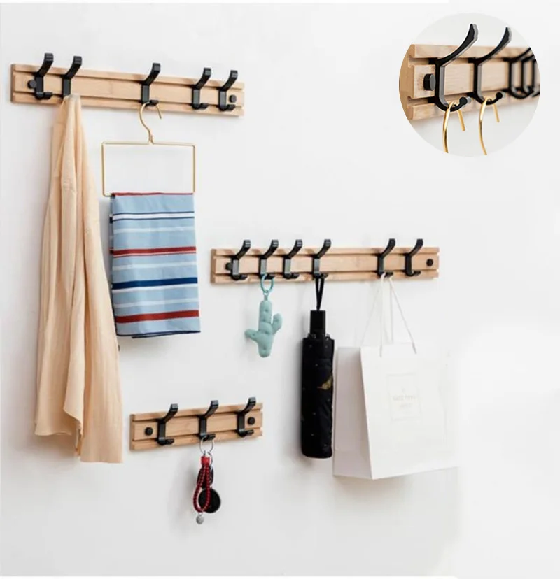 Hot Sale Nordic Wood Coat Rack Key Holder Clothes Hangers Simple Hook Wall Shelf Home Decorative Bedroom Furniture