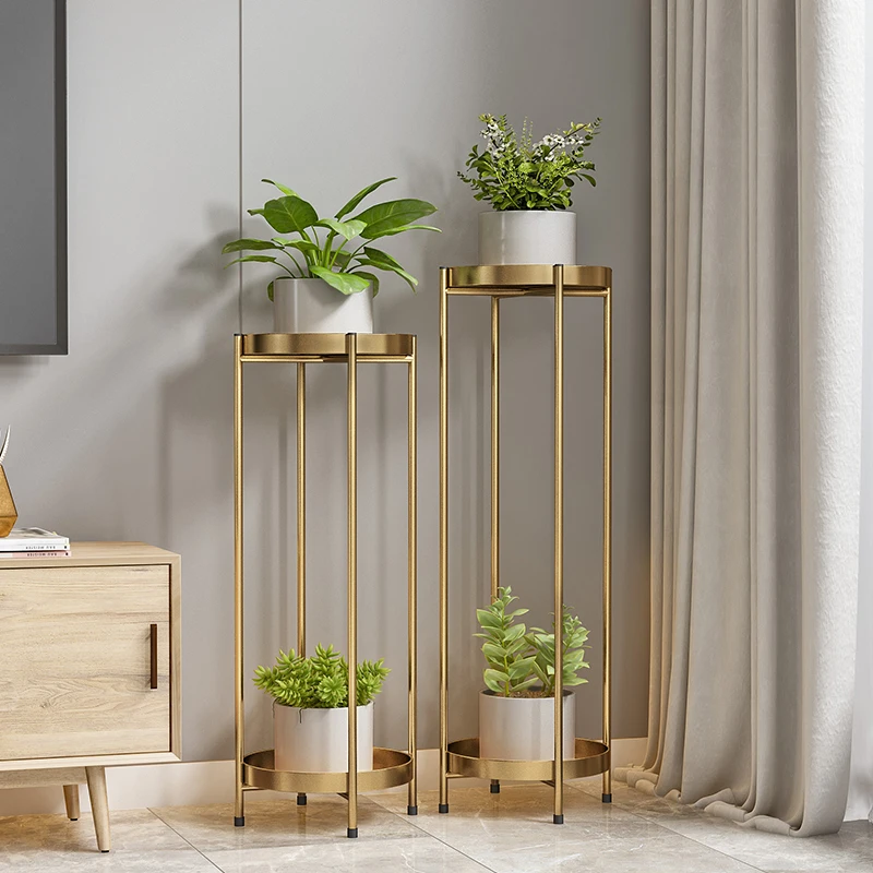 Nordic Living Room Floor-to-ceiling Balcony Flower Pot Rack Simple Double-layer Iron Art Green Radish Household Rack