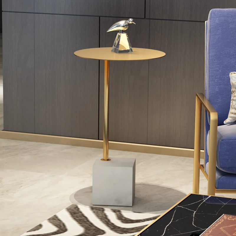 Nordic Marble Small Coffee Table Living Room Sofa Side Corners Simple Modern Creative Wrought Iron Golden Small Round Table