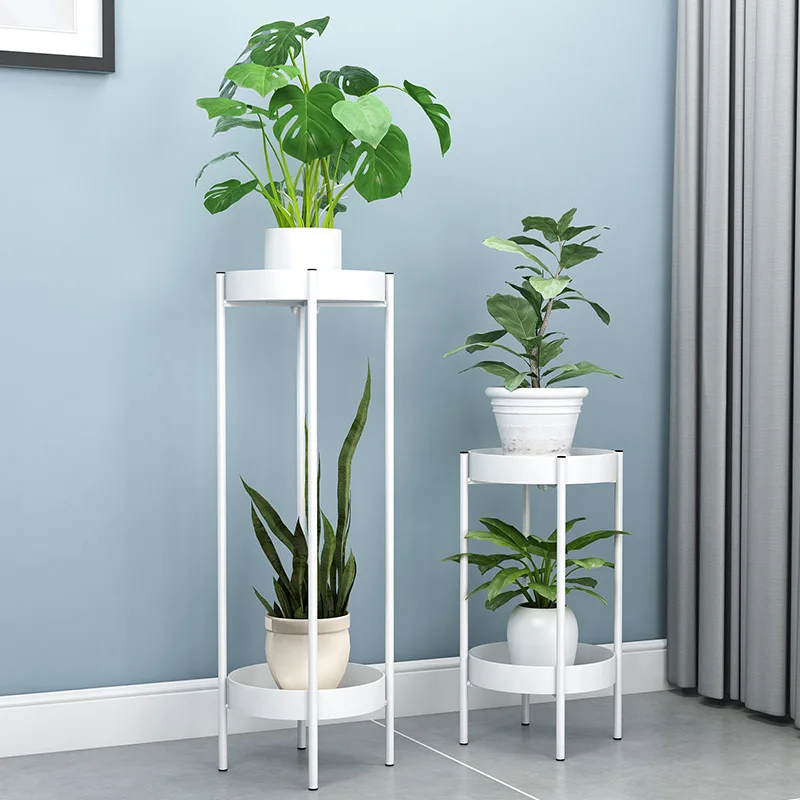 Nordic Metal Plant Stand 2-tire Gold Flower Metal Stand Office Home Iron Plant Stand White Metal Garden Decors Metal Shelves
