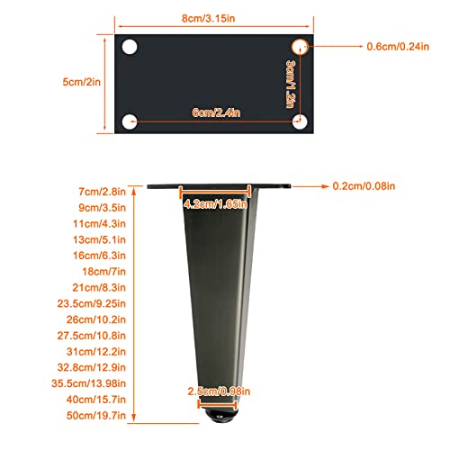 4 Nordic Piedini per Mobili,Gambe da Tavolo Affusolate Quadrate,Gambe Regolabili in Acciaio Inossidabile,Piedino di Appoggio,Finitura Nera Opaca,per Sala da Pranzo/Soggiorno (27.5cm/10.8in)