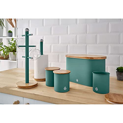 Swan Nordic Portarotolo da Cucina, Portas Ciugamani Verticale, Albero in Acciaio al Carbonio, Base in bambù, Stabile e Robusto, Design Moderno, Verde, Taglia Unica
