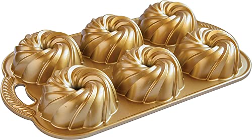 Nordic Ware Swirl Bundtlette - Stampo in alluminio pressofuso per torte con motivo a ricciolo, realizzato negli Stati Uniti, colore: oro