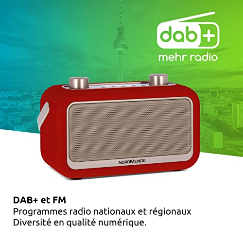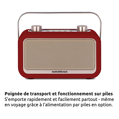 Nordmende Transita 30 - Radio digitale portatile (DAB+, FM, streaming audio Bluetooth, sveglia, ora, memoria preferita, display LCD, jack per cuffie, 2 altoparlanti stereo da 3 Watt) rosso