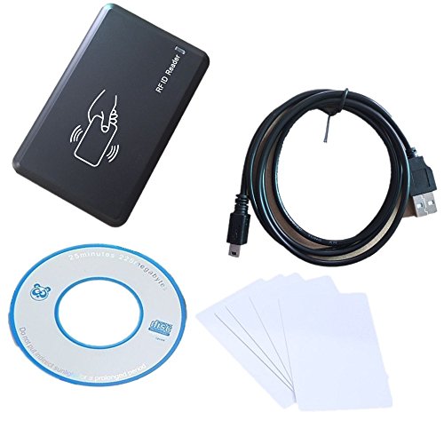 Contenuto della confezione: 1 lettore di schede RFID da 125 Khz, 1 cavo USB, 1 CD, 5 schede T5557