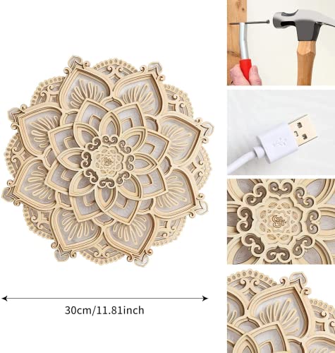 Nordterm Mandala Yoga Room Night Light, Lampada da parete Mandala Multistrato Laser Cut intagliato LED Elegante Mandala Hanging MDF Panels Decorazione della lampada (mandala)