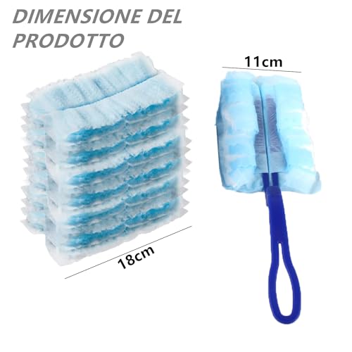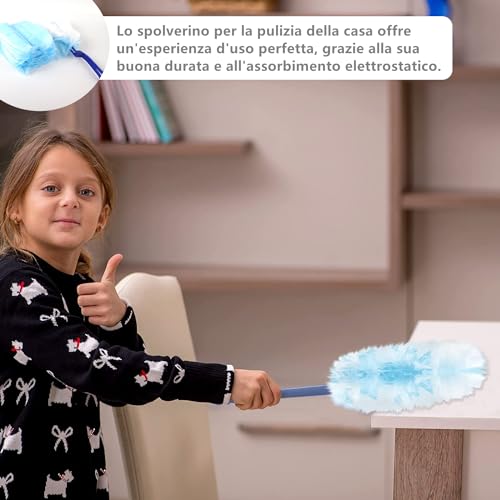 Facilita lo stoccaggio: Avendo un ampio campo di applicazione, la spazzola per la pulizia della polvere angolare vi aiuta a mantenere un ambiente pulito e ordinato, adatto per la pulizia di auto, camere da letto, soggiorni, armadi, soffitti, apparecchiature elettroniche e uffici.La confezione include 20 testine di ricarica blu monouso per spolverino
