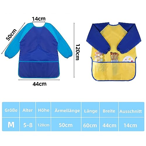 Norhogo 2 pezzi di camice da pittura impermeabile con maniche e 3 tasche per grembiule da pittura per bambini 5-8 anni, per ragazzi e ragazze, per la scuola, arte pittura, cucina, cibo, attività di