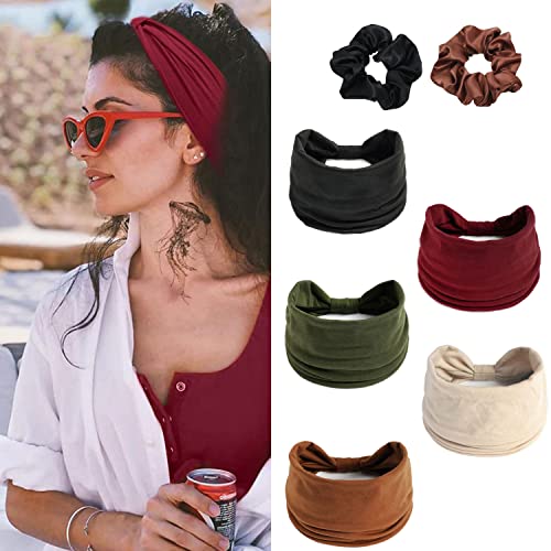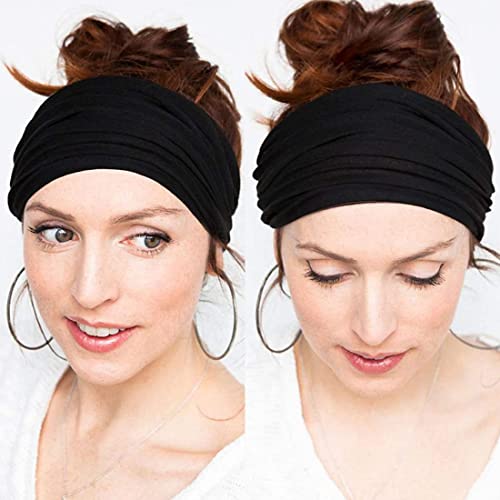 Norhogo 5 Pezzi Women Boho Headband, Yoga Nodo Sciarpe elastiche per capelli Accessori per Elastici Turbanti per Donne e Ragazze Sports, Gym, Headband Viene fornito con due elastici per capelli