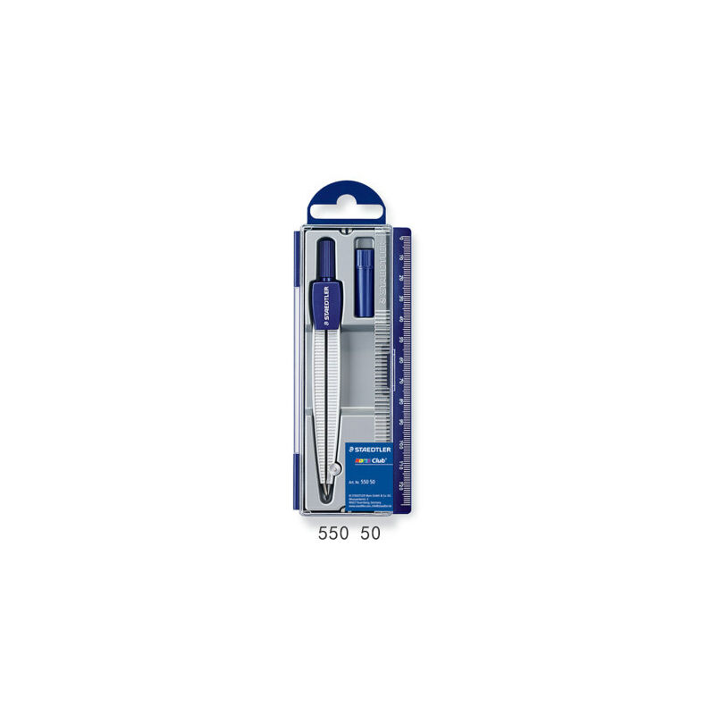 Bussola da scuola di precisione per i primi esercizi di ricalco a scuola, realizzata in materiale plastico Per cerchi fino a 300 mm di diametro Contenuto del prodotto: 1 bussola scolastica e 1 astuccio porta piombo Punta di sicurezza che non punge, per uso scolastico Bracci triangolari e striati Informazioni sul prodotto Lunghezza 124 mm Numero di prodotti: 1 Colore: blu scuro + grigio 550 50 Bussola scuola di precisione in plastica. < p>Sicurezza consiglio. Per uso scolastico. Contenuto del prodotto: 1 bussola da scuola (lunghezza 124 mm) e 1 custodia di piombo in una pratica valigetta trasportabile.