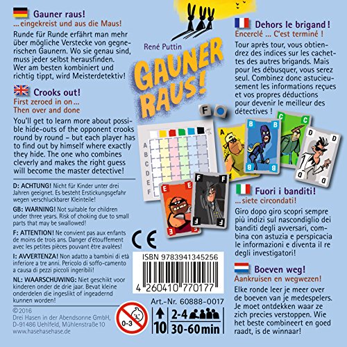 Noris Spiele Tre Conigli in Sole della Sera 608880017 - Ladro Raus, Scheda Giochi, Multicolore