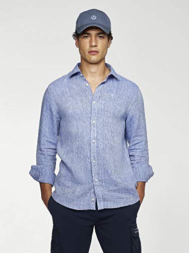 NORTH SAILS Camicia Uomo in Mare Azzurro - 100% Lino Regolare Adatto con Collo Classico e Schiena Giogo Posteriore - M