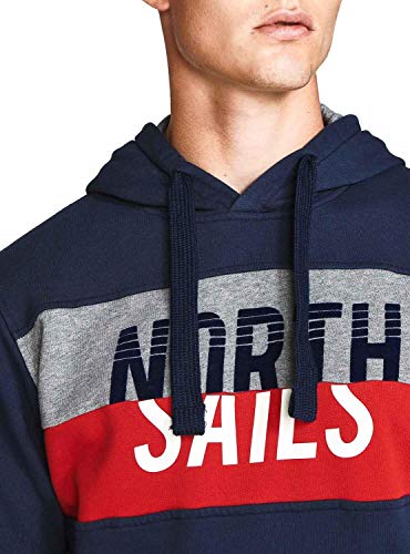 NORTH SAILS Uomo Felpa con Cappuccio a Blocchi di Colore Blu Marino 100% Cotone Cappuccio Accogliente con Tasche a Marsupio e Bordi a Costine - XXL