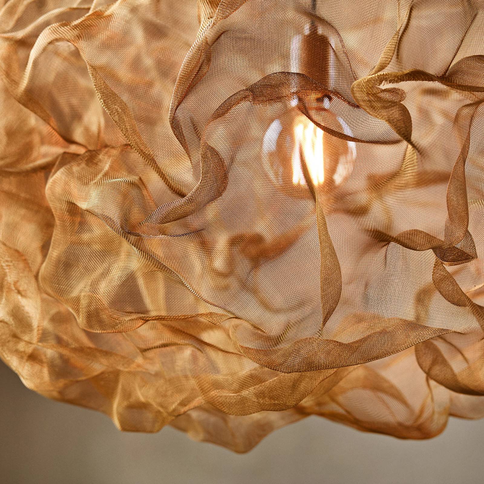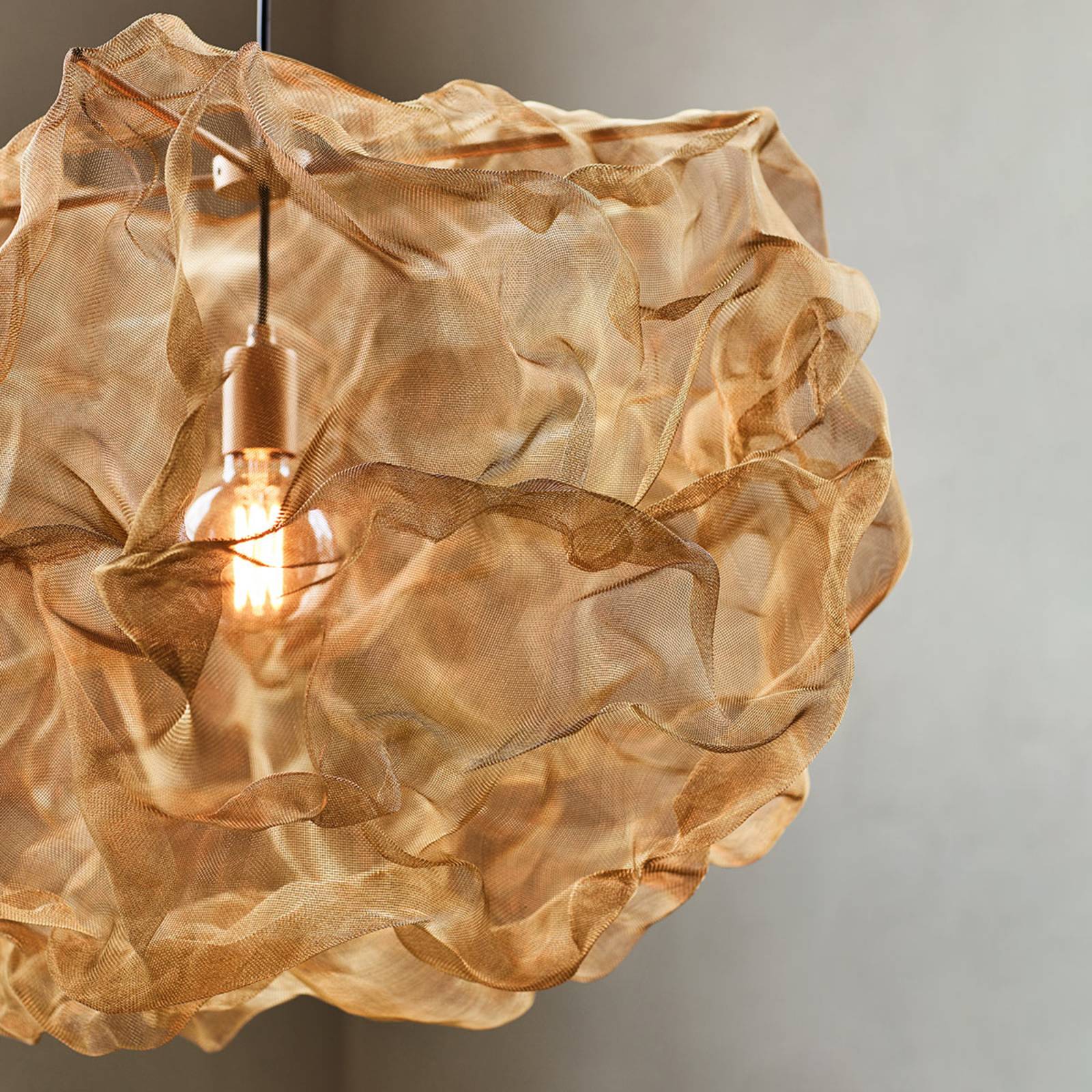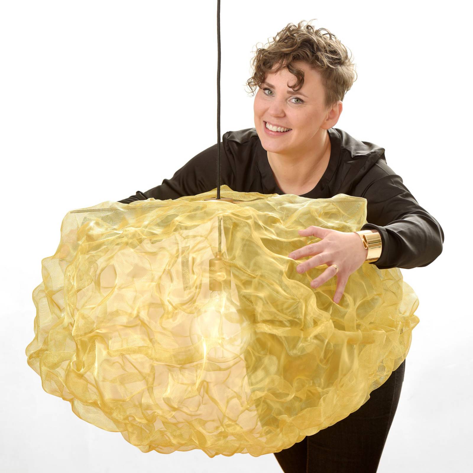Una nuvola di fuoco incandescente": così la designer svedese Johanna Forsberg descrive la lampada a sospensione Heat. Una rete in filigrana di ottone scintillante forma il paralume dalla forma insolita di questa lampada. In effetti, ricorda una grande palla di fuoco incandescente quando il vimini lucido riflette la luce e conferisce all'ambiente un'atmosfera calda e accogliente. Non appena la luce viene spenta, Heat rivela il suo carattere calmo e trasparente, ma non perde affatto il suo fascino. Johanna Forsberg è riuscita a creare una lampada di design dinamica, definita soprattutto dai suoi contrasti. Allo stesso tempo, l'aspetto sociale ha giocato un ruolo importante nello sviluppo di questa lampada. Con l'obiettivo di promuovere la creatività e le abilità artistiche tra le persone socialmente svantaggiate, la designer ha collaborato con un'agenzia di sviluppo per affidare a richiedenti asilo e migranti disoccupati la produzione del paralume. Da allora, il paralume della lampada a sospensione Heat è stato realizzato a mano esclusivamente da migranti e richiedenti asilo. La designer e artista Johanna Forsberg è cresciuta nel nord della Svezia. La sua carriera creativa è iniziata quando ha scoperto il potenziale artistico di un materiale speciale. Questo materiale non era altro che la rete d'acciaio, che l'ha affascinata così tanto che nel tempo ha continuato a perfezionare il suo lavoro con la rete metallica. Forsberg ha sempre basato le sue creazioni artigianali su forme naturali. Nel 2018 ha finalmente realizzato il suo capolavoro con la lampada a sospensione Heat, un oggetto di illuminazione di alta classe realizzato in maglia di ottone, che ispira e delizia altri artisti e designer in tutto il mondo con il suo aspetto elegante.