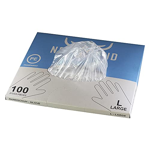 NORTHHAND Guanti monouso in polietilene, 1000 pezzi, in polietilene trasparente, pratica scatola dispenser per guanti monouso igienici (medio)