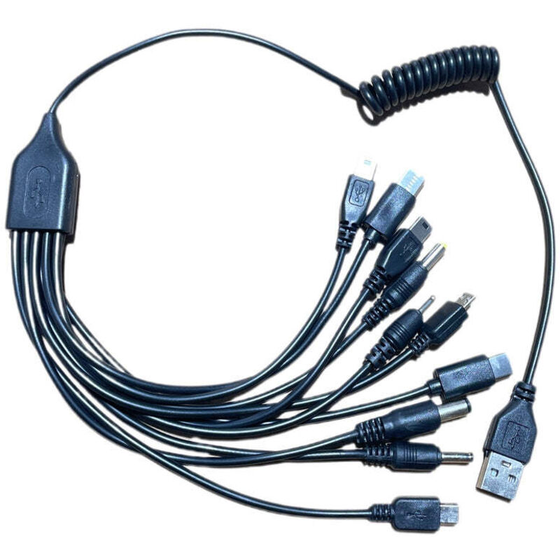 Questo cavo di ricarica è di ca. 58 cm di lunghezza e dispone di connettori per diversi tipi di dispositivi. Un'estremità ha 1 connettore USB 2.0 e l'altra estremità ha 10 spine per la ricarica di dispositivi portatili. Con connettore Micro-USB, Mini-USB e iPhone, tra le altre cose, il cavo offre funzionalità di ricarica per la maggior parte dei dispositivi portatili come telefoni cellulari, tablet, fotocamere digitali e simili. Il cavo ha una parte elastica a forma di spirale che permette di allungarlo fino a ca. 95 cm. - Cavo di ricarica multifunzionale 10 in 1 - 10 spine per la ricarica di dispositivi portatili - 58 cm di lunghezza e può essere esteso a ca. 95 cm Specifiche: Colore: nero Materiale: metallo, plastica Lunghezza cavo: 58-95 cm Contatto A: USB 2.0 Contatto B: 2x Micro-USB, 2x Mini-USB, 1x USB-C, 1x iPod/iPhone, 1x PSP, 1x Nokia 8250, 1x Samsung l900, 1x Nokia N90 La confezione contiene: 1x cavo di ricarica