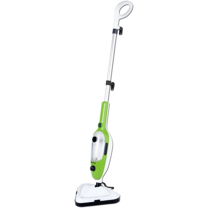 Questa scopa a vapore con diversi accessori permette di pulire tutta la casa in modo efficiente. Gli accessori includono panni in microfibra per la pulizia di pavimenti e mobili, una base per la pulizia di tappeti e spazzole, raschietti e bocchette per la pulizia di finestre, fornelli e lavello. Il mocio può essere utilizzato sulla maggior parte dei pavimenti resistenti al calore, inclusi piastrelle, marmo, pietra e linoleum. Tutti gli accessori possono essere fissati alla base del mocio che consiste in un serbatoio dell'acqua con una capacità di 45 cl. Un serbatoio pieno è sufficiente per un massimo di 20 minuti di pulizia. Il serbatoio ha una manopola girevole dove è possibile selezionare la forza del vapore. - Scopa a vapore con diversi accessori - Pulisci sia i pavimenti che i mobili - Serbatoio dell'acqua con una capacità di 45 cl Specifiche: Colore: verde, bianco Materiale: plastica, acciaio, tessuto Dimensioni, confezione: ca. 23,5 x 17 x 45 cm Lunghezza cavo: 4,5 m Capacità