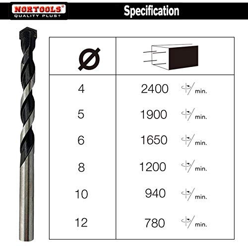 NORTOOLS Set di punte per muratura con punta in metallo duro per mattoni, calcestruzzo, pietra naturale 7 pezzi 4-12 mm