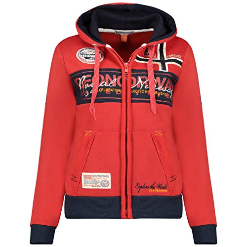 GEO NORWAY Flyer Lady - Felpa Cappuccio Tasche Donna - Felpa Logo Donna - Maniche Lunghe Comfort - Felpa Cappuccio Cotone Sportivo Rosso XL